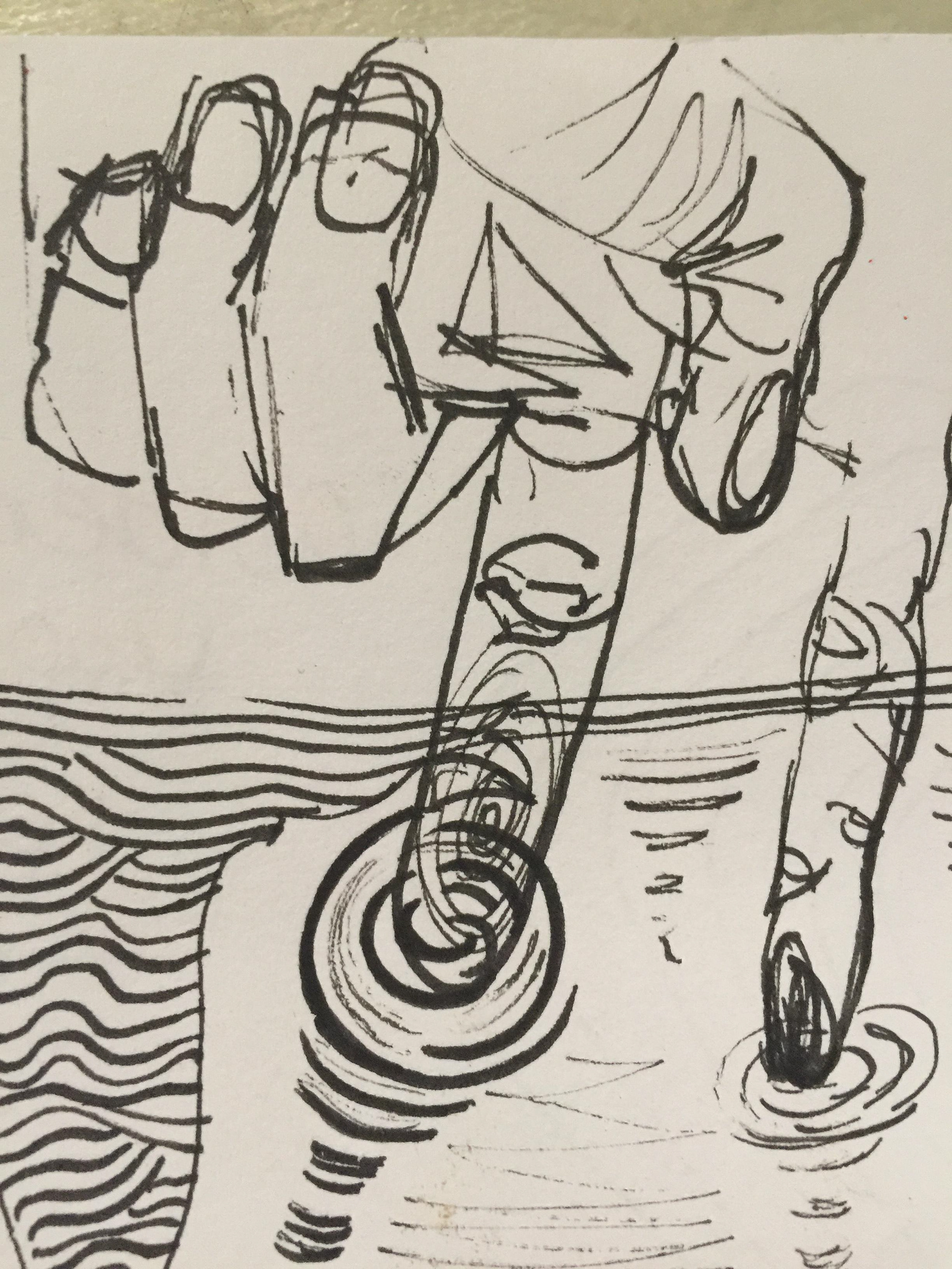 R Image: Practising with the hand and the rings within the finger imprints and the ripple effect of water.