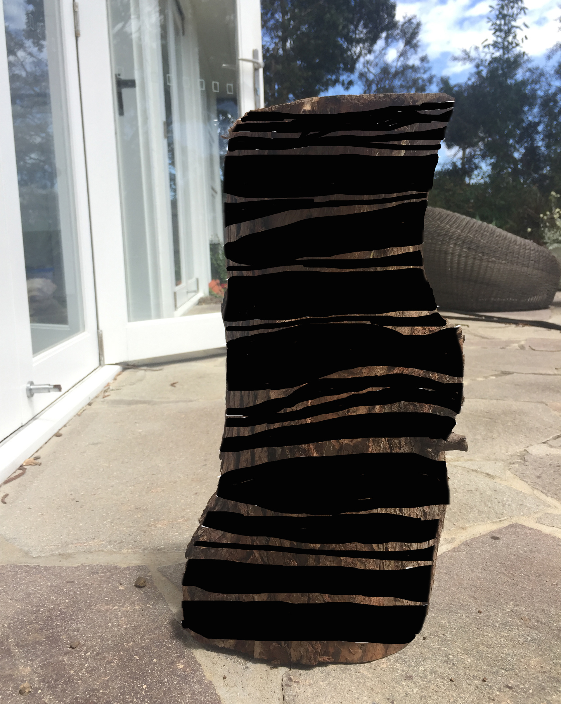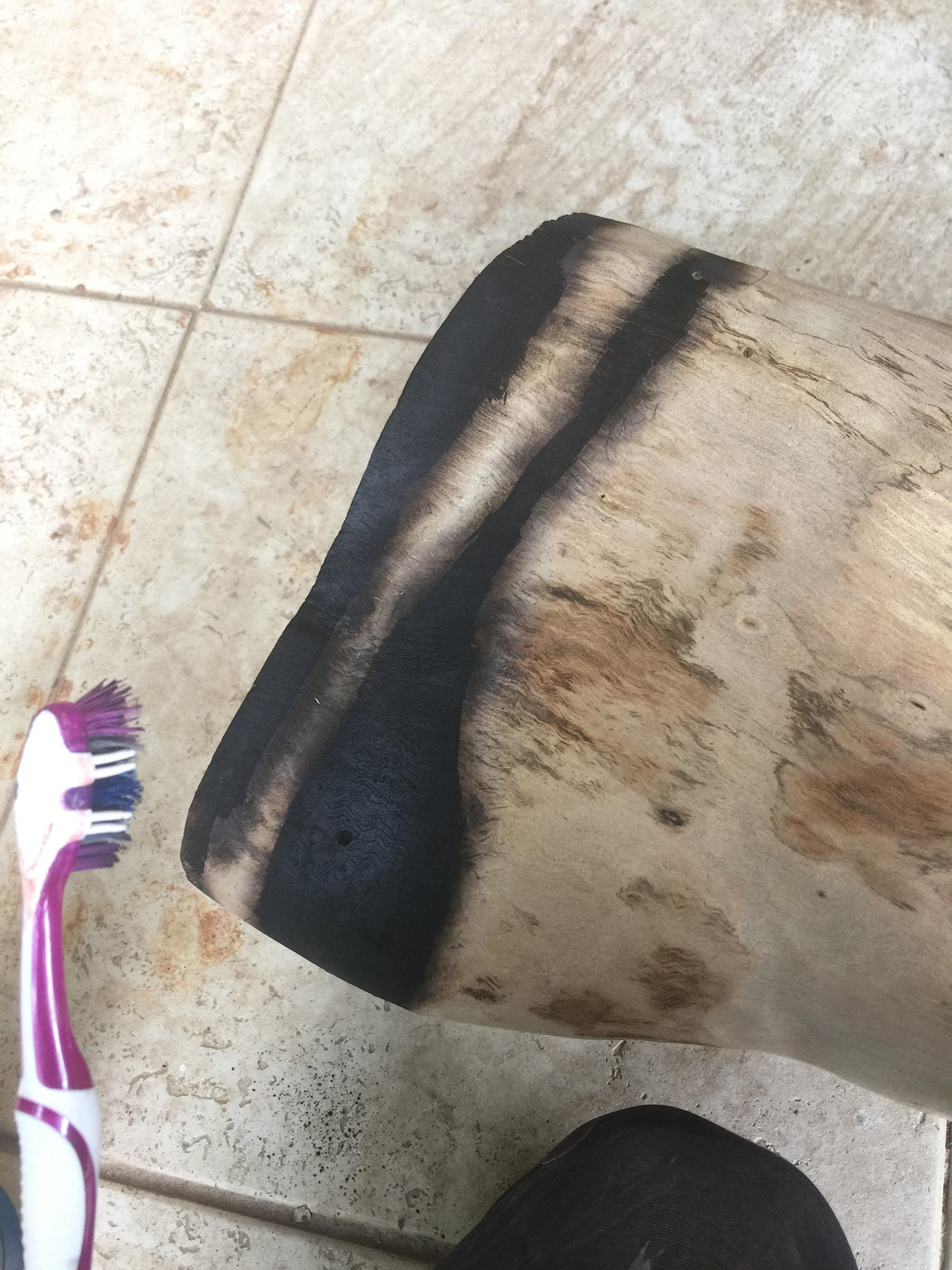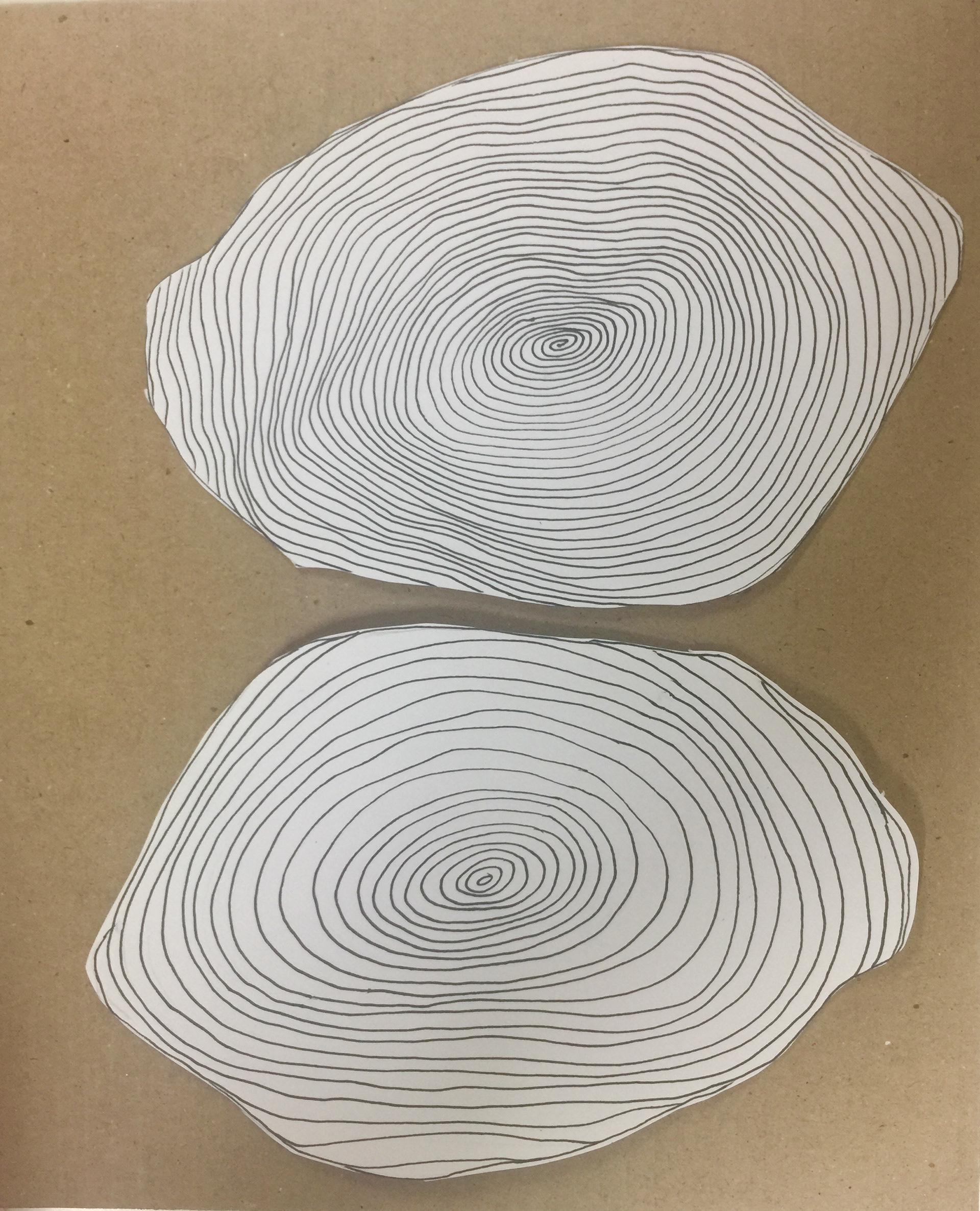 In photoshop I have painted rings around the wood as a representation of how I will produce the final product. I will use a blow torch to create the black charcoal lines. Sketches also below. Juxtaposition is evident through the man made structure of charcoal rings, against the natural process of rings found in wood.