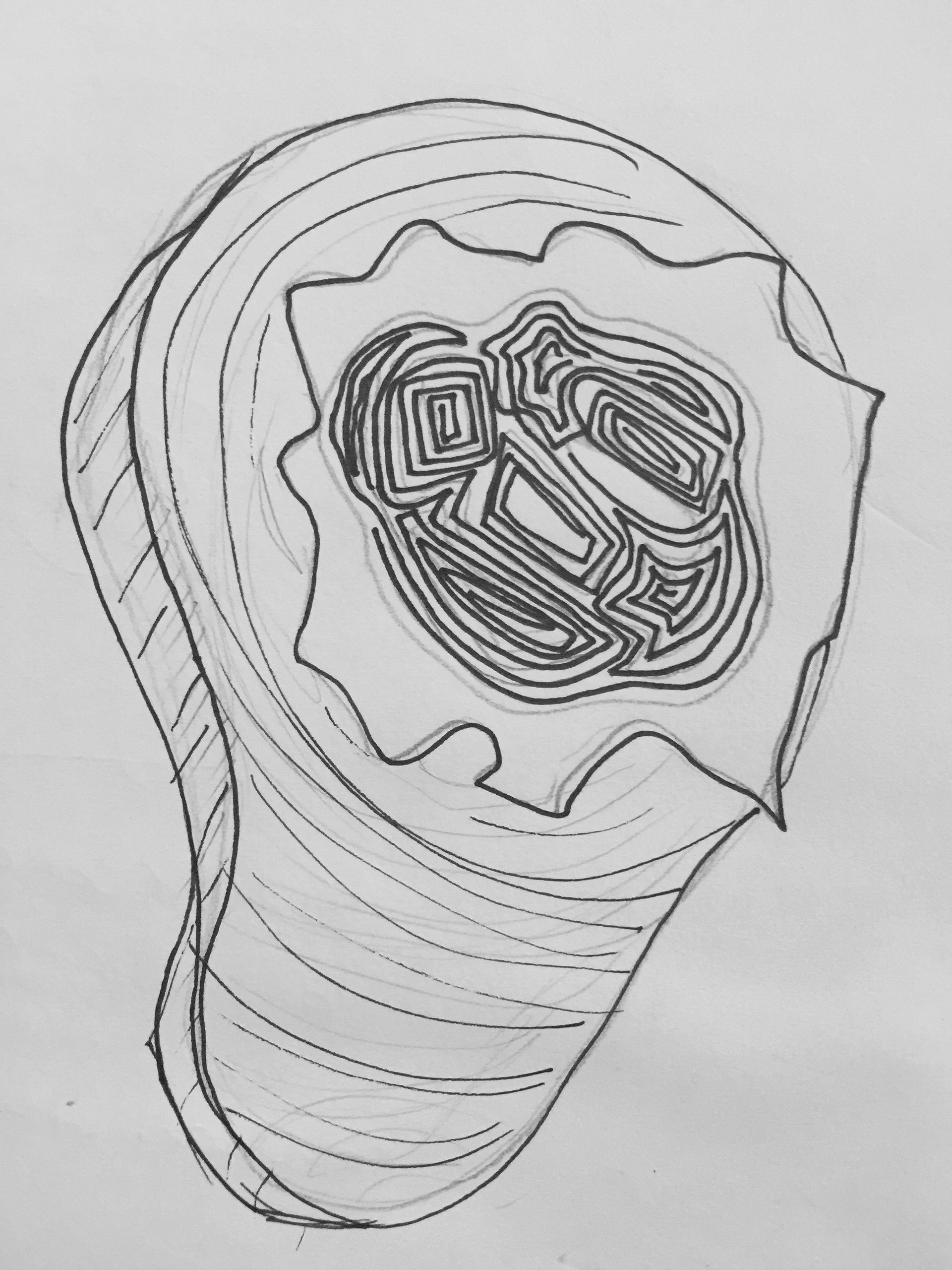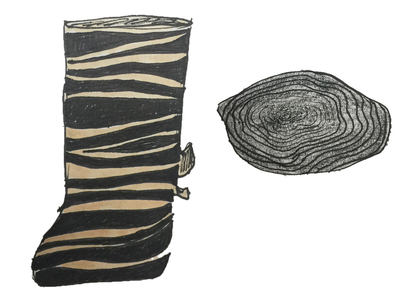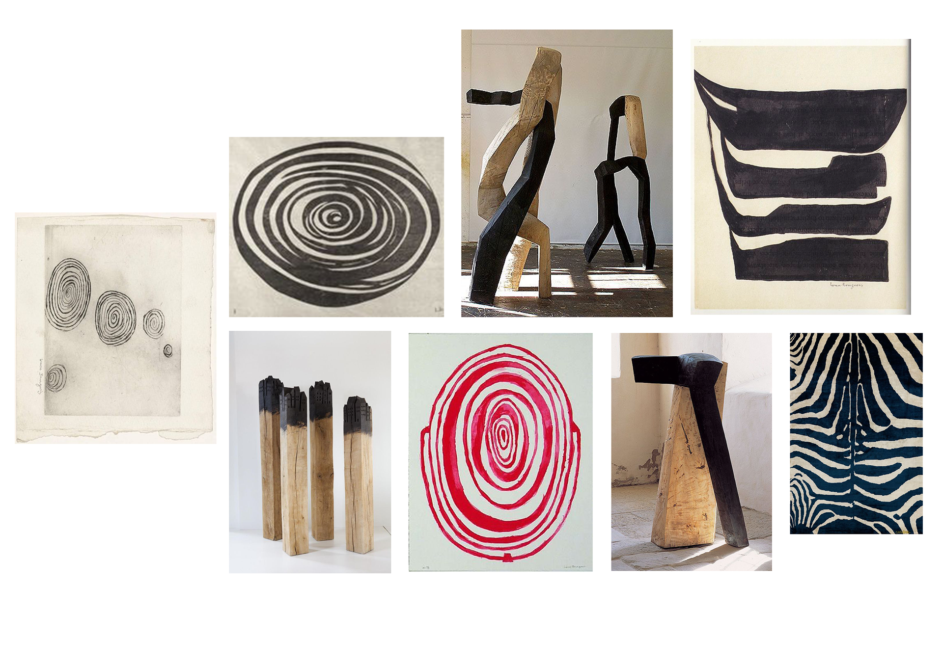 In photoshop I have painted rings around the wood as a representation of how I will produce the final product. I will use a blow torch to create the black charcoal lines. Sketches also below. Juxtaposition is evident through the man made structure of charcoal rings, against the natural process of rings found in wood.